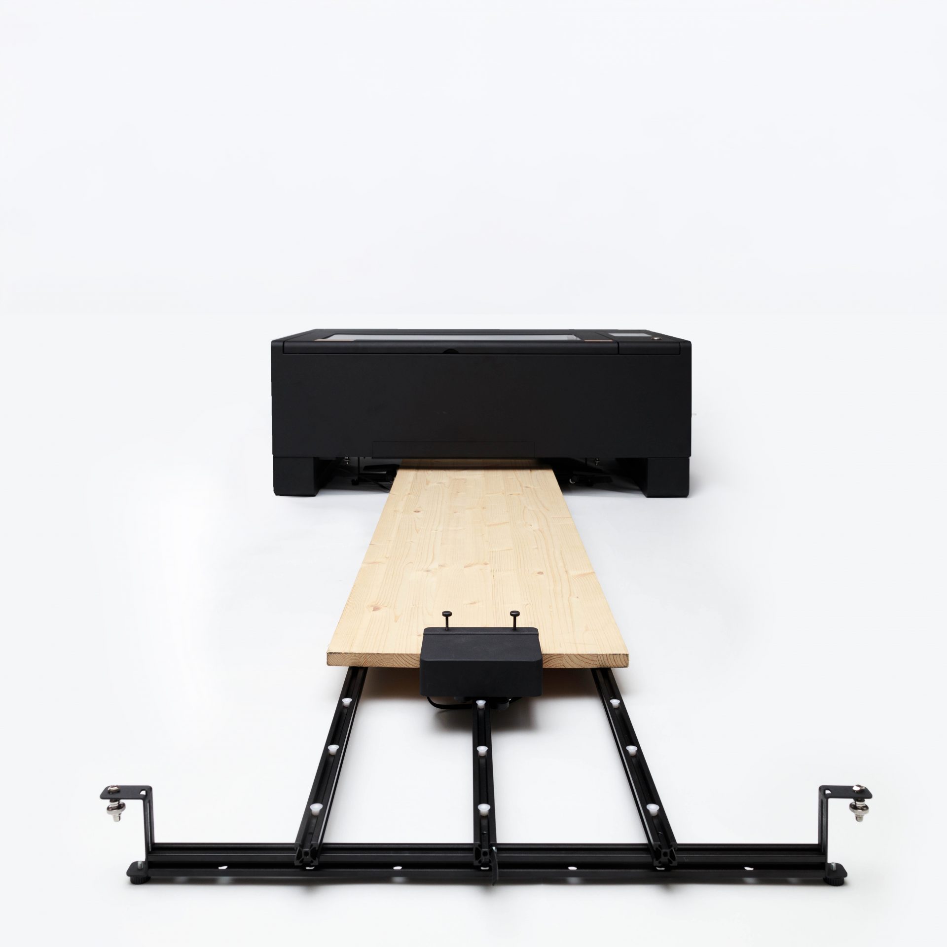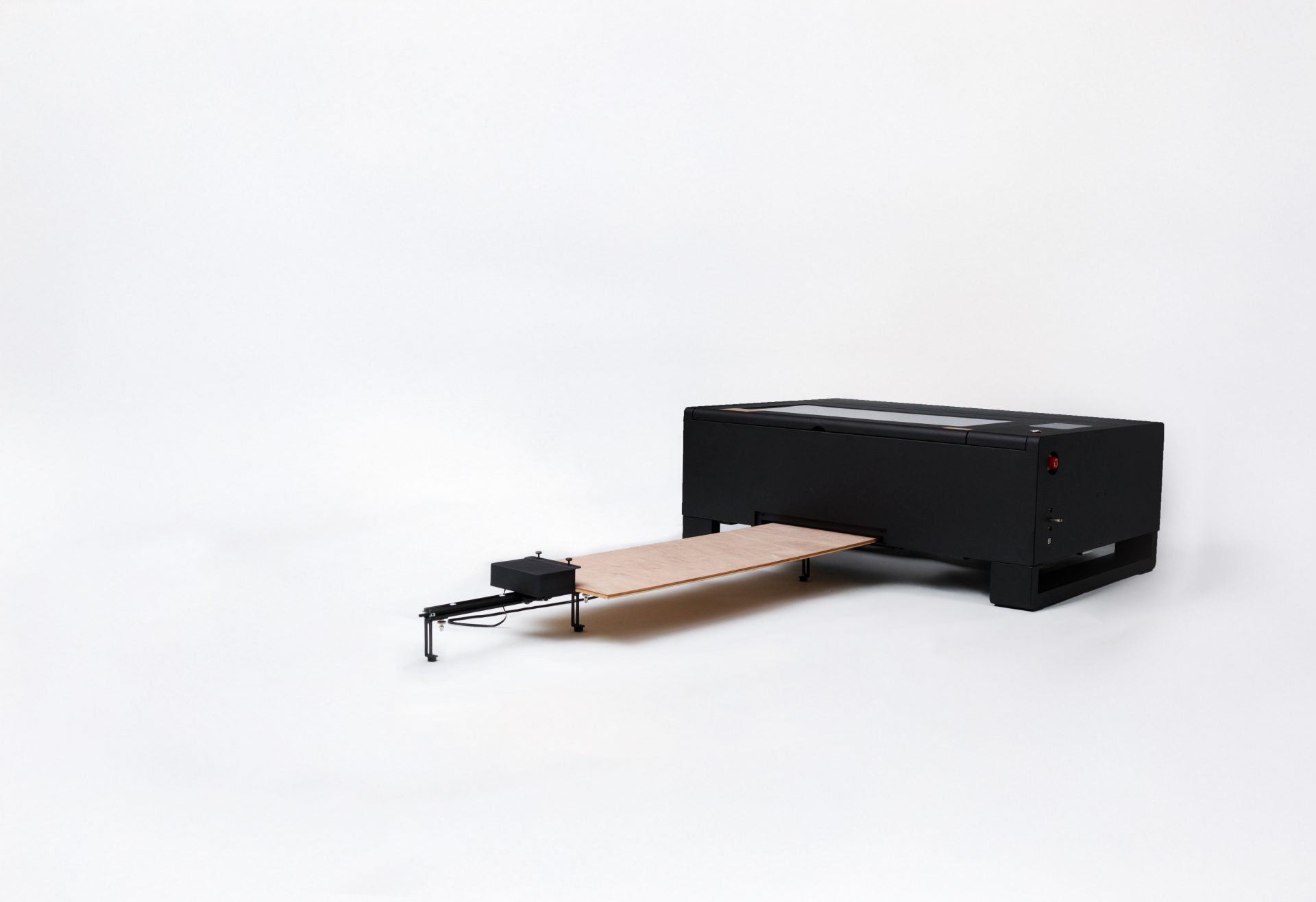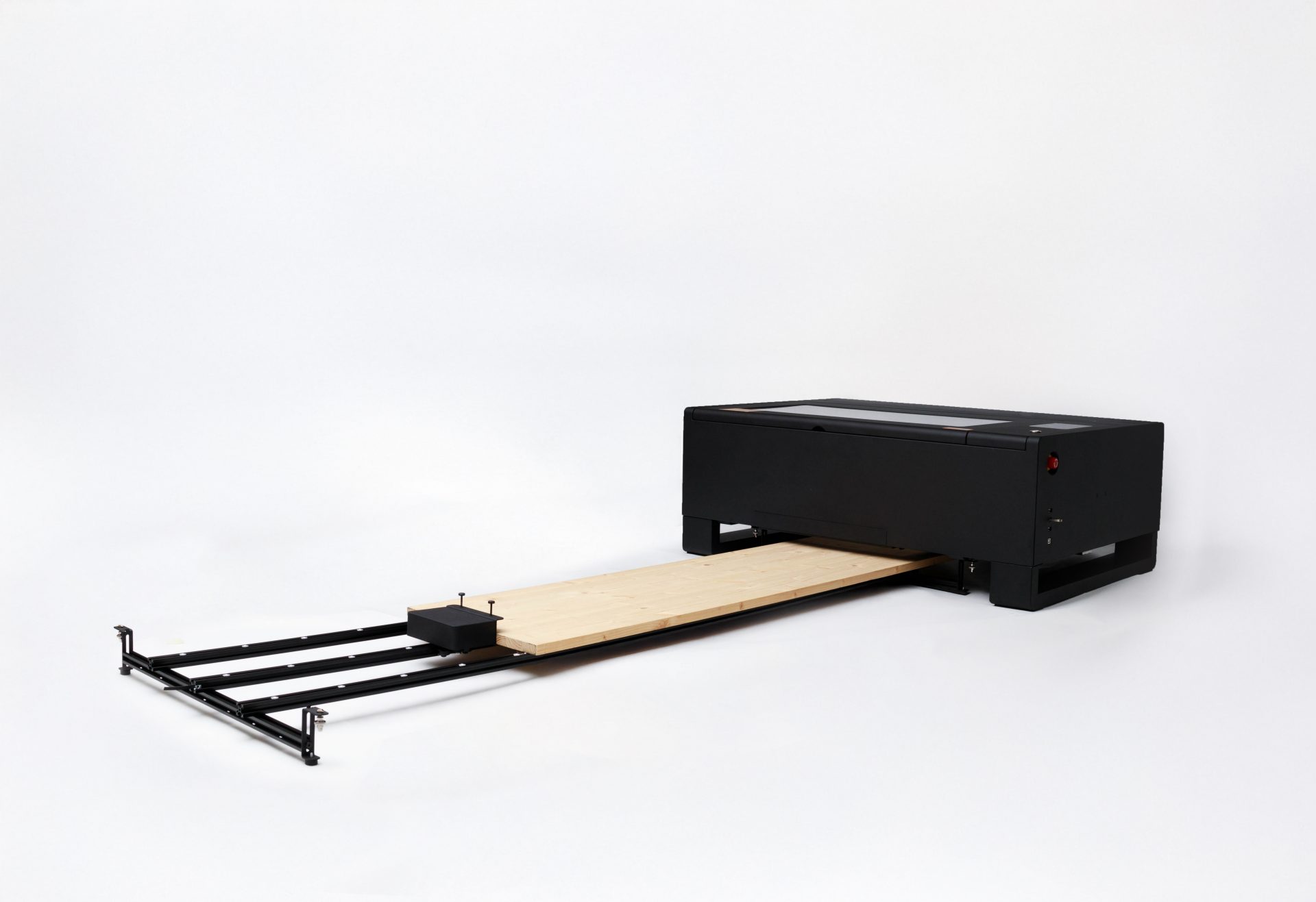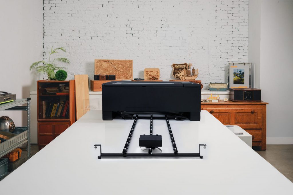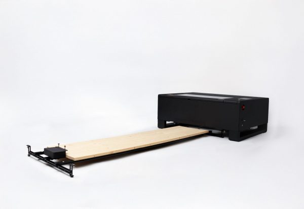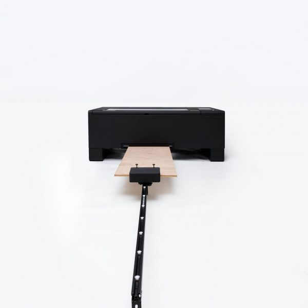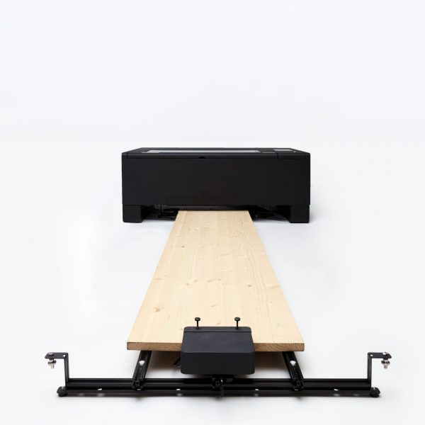 ¿Tu material es más grueso que 14 mm? Puedes introducirlo por la abertura inferior de la máquina y seguir trabajando con objetos voluminosos, como tablas tipo skateboard u otros formatos especiales, manteniendo la comodidad de uso.