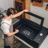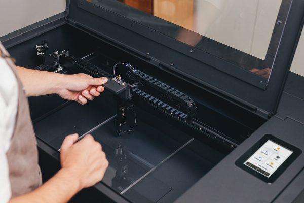 El Auto Feeder admite materiales de hasta 14 mm de grosor y 350 mm de longitud a través de la ranura designada. ¿Tu material es más grueso que 14 mm? No pasa nada: introdúcelo directamente por la abertura y podrás grabar incluso objetos gruesos como skates sin problema.